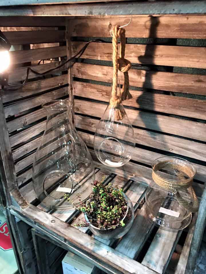 I was super excited about this display- check out the old pallets cut up and painted a reused for this display- awesome!