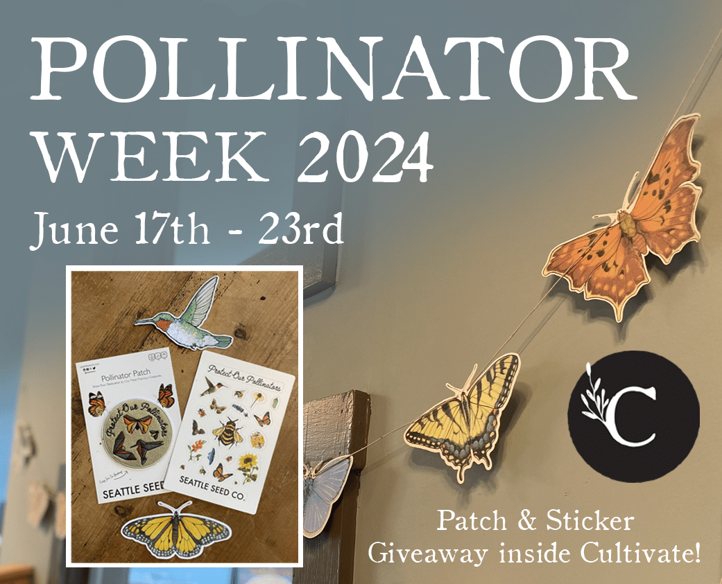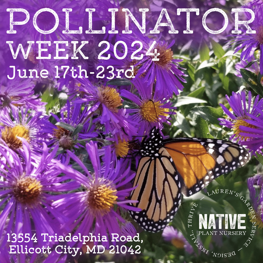 We will be donating 10% of our sales of Monarda, Solidago, Aster, Pycanthemum, and Asclepias for the week to the Howard County Chapter of Bee City. On Saturday the 22nd, there will be a plug giveaway of Pycnanthemum tenuifolium (Narrowleaf Mountain Mint) for the first 50 purchases! For the kids, there will be a DIY bee puddler station in the nursery all week. Finally, stop in Cultivate and mention Bee City to get a free pollinator sticker or patch while supplies last!